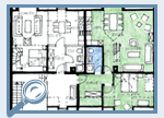 Die im Dachgeschoss gelegene Wohnung besteht aus einem großen Wohnraum mit einer Couchgruppe, einem Eßplatz mit großem Esstisch, einer Galerie (etwas steile Treppe) mit 2 Schlafmöglichkeiten und einer Küchenzeile. Die Küchenzeile ist mit einem Elektroherd mit Ceranfeld, Backofen, Kühlschrank, Geschirrspülmaschine, Kaffeemaschine und Toaster ausgestattet. In einem separaten Schlafraum befinden sich ein Doppelbett und ein Einzelbett. Die Wohnung ist mit einer Dusche ausgestattet. Bei Bedarf kann ein Kinderreisebett zusätzlich aufgestellt werden.